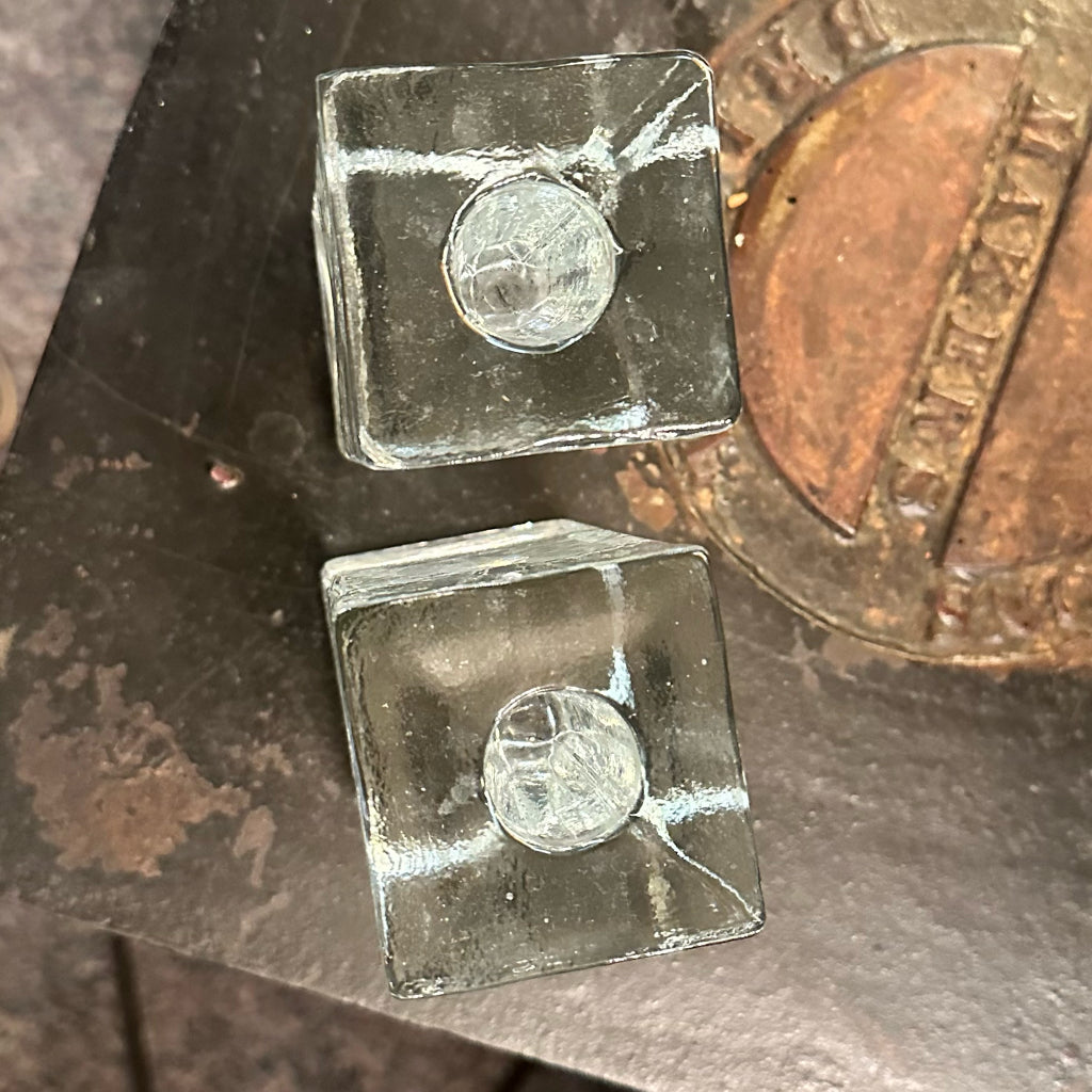 Pair BLENKO ICE CUBE 5" Candlesticks frosted glass