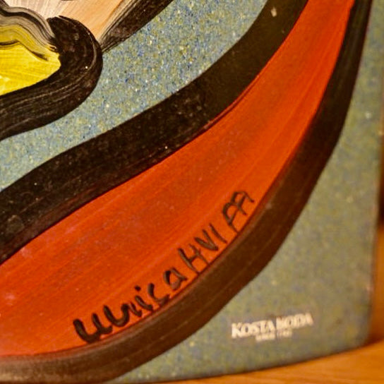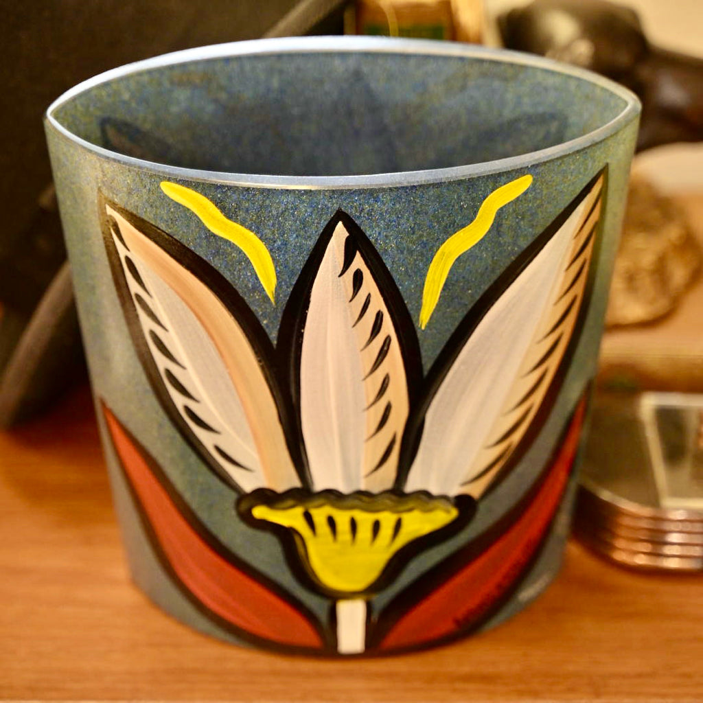 Vase K. Boda 8" hand painted glass "Moonflower" series 1997